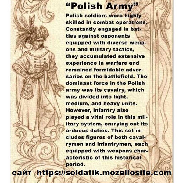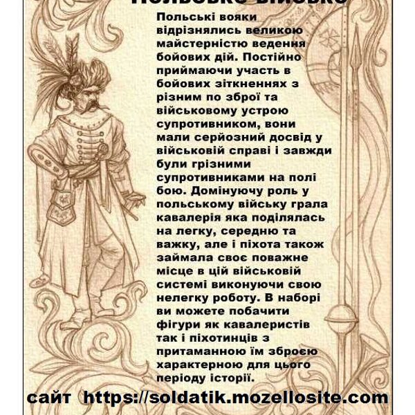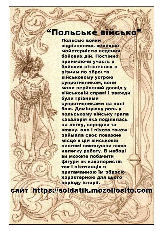 Набір солдатиків Польські воїни XVII століття 8 фігурок, 1/32 мм, 54 мм матеріал - харчовий поліетилен